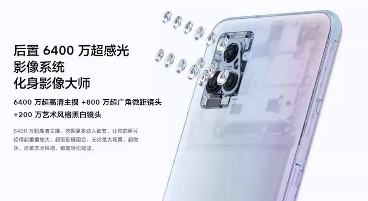 Hlavní fotoaparát se skládá ze tří senzorů. Jsou umístěny v trojúhelníku, který je zase orámován obdélníkem. Vypadá velmi stylově. Parametry snímačů jsou následující: 64/8/2 MP. To nejsou v žádném případě špatné ukazatele. Na stejné straně pod fotoaparáty je LED blesk.