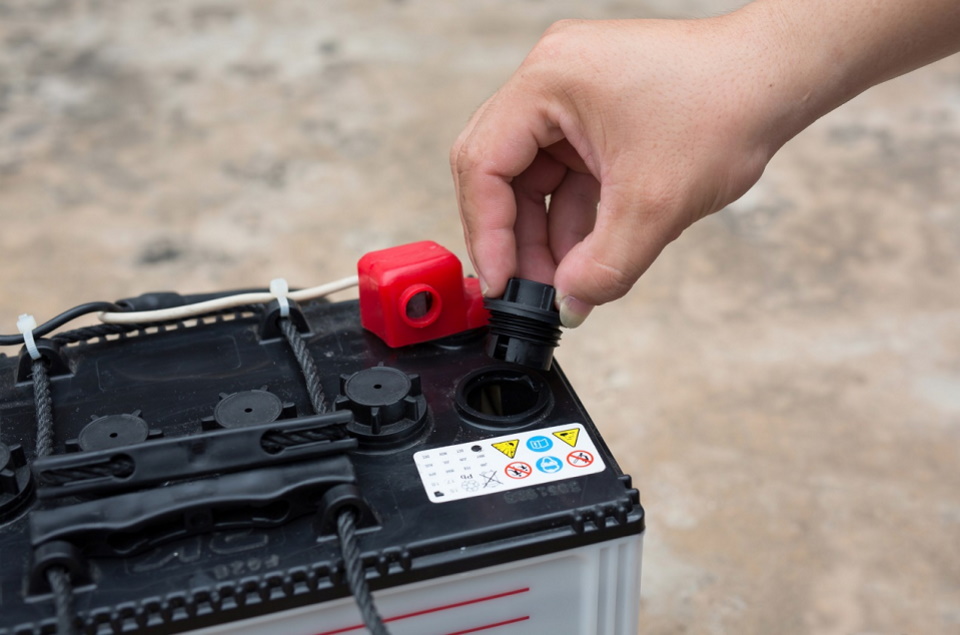 Pro udržení požadované hladiny elektrolytu se přidává destilovaná voda.