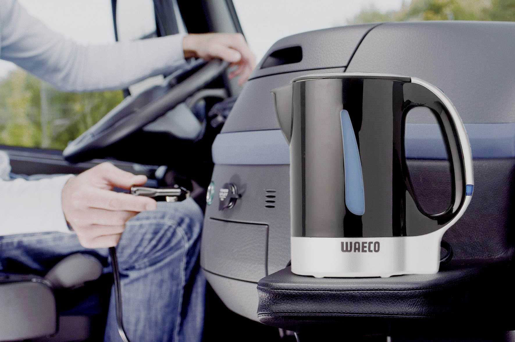 Výrobky se liší od svých domácích protějšků objemem a tvarem. Jsou trochu menší. Mají však stejnou funkci – ohřívat vodu. Ve voze není zásuvka 220 V, proto je připojena do palubní sítě, kde je jmenovité napětí 12 V. Model je vybaven speciální šňůrou, která se zasune do zásuvky zapalovače. Zařízení funguje jak při zapnutém motoru, tak po jeho vypnutí (z baterie). Během jízdy je energie dodávána z generátoru.