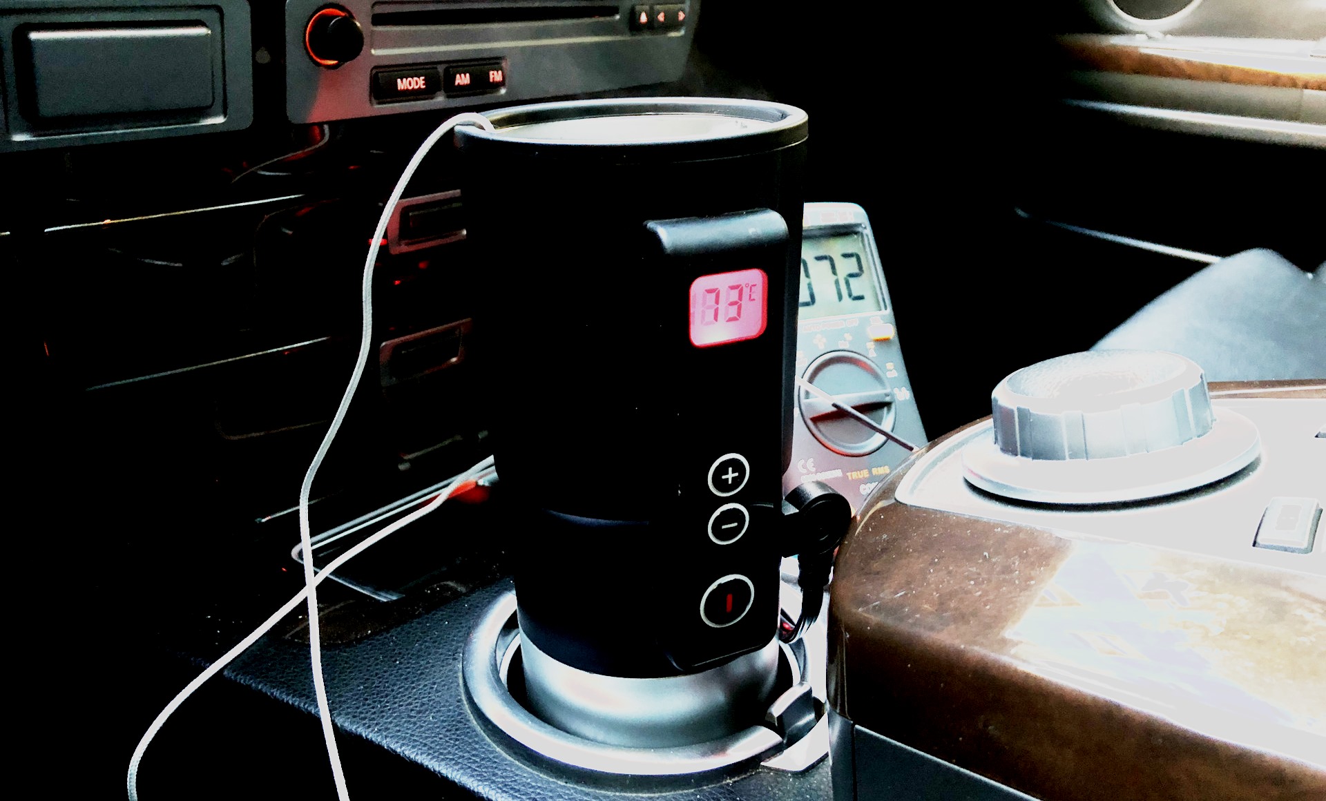 Kabel končí speciálním konektorem, který se zasouvá do zapalovače cigaret, a ne do běžné elektrické zásuvky. Velmi pohodlné v provozu. Není potřeba pečlivé péče. Design je atraktivní. Jedinou nevýhodou je, že dokáže ohřívat vodu po dlouhou dobu. Ke svému fungování potřebuje palubní síť. Průměrná doba varu je 10 minut. Vyrábí se od 0,5 do 1 litru. Je velmi vzácné najít exempláře, jejichž objem dosahuje 1,5 litru.