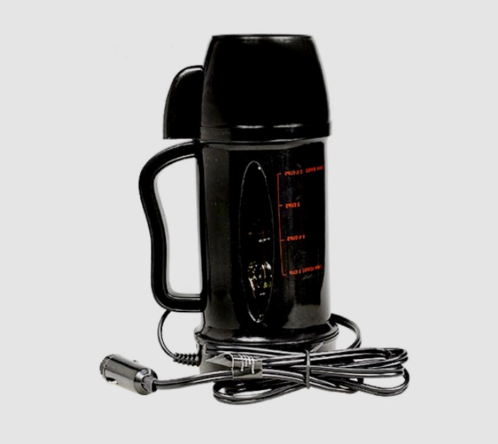 Tuto vychytávku ocení každý motorista. Vybaveno kabelem pro připojení k zapalovači cigaret, krytem a pohodlnou rukojetí. S designem není žádná podobnost. Ohřeje vodu až na 70 stupňů. Navrženo pro použití jednou osobou. Kapalina se rychle zahřívá. Objem nepřesahuje 0,5 litru. Typ napájení je shodný s ostatními zařízeními.