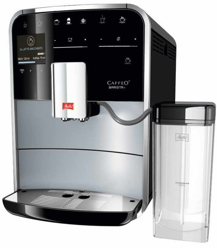 Stroj je vybaven auto-kapuccinátorem s nádobou. Melitta Caffeo Barista T je vybavena podsvíceným dotykovým displejem a mnoha dalšími užitečnými funkcemi.