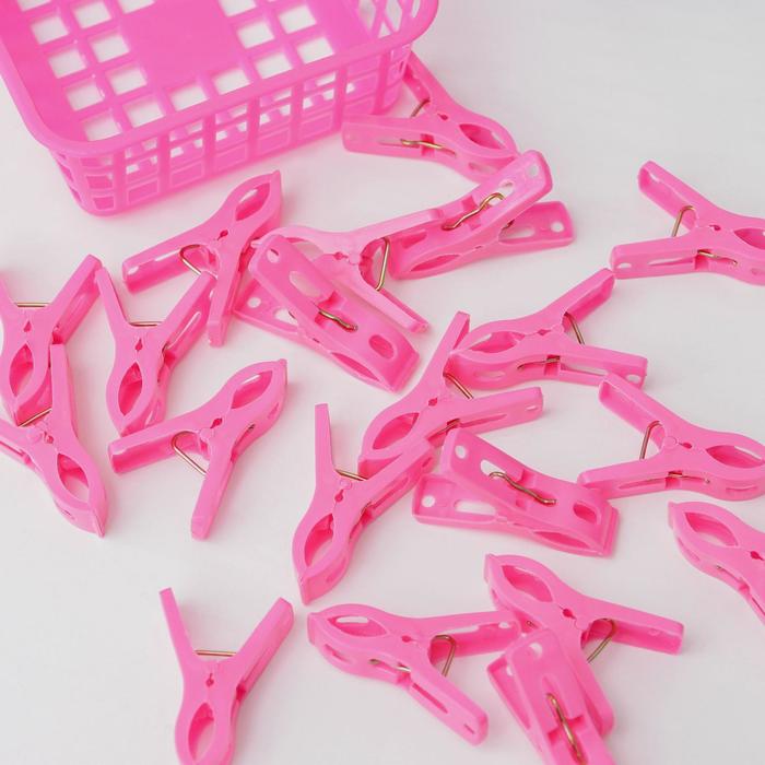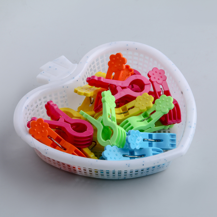Plastový koš má kompaktní velikost a je umístěn na pračce. Sada je dodávána se speciálním háčkem, pomocí kterého ji můžete upevnit na prádelní šňůru. Výrobek je natřen jasnou sytou barvou, která nevybledne ani při častém používání.