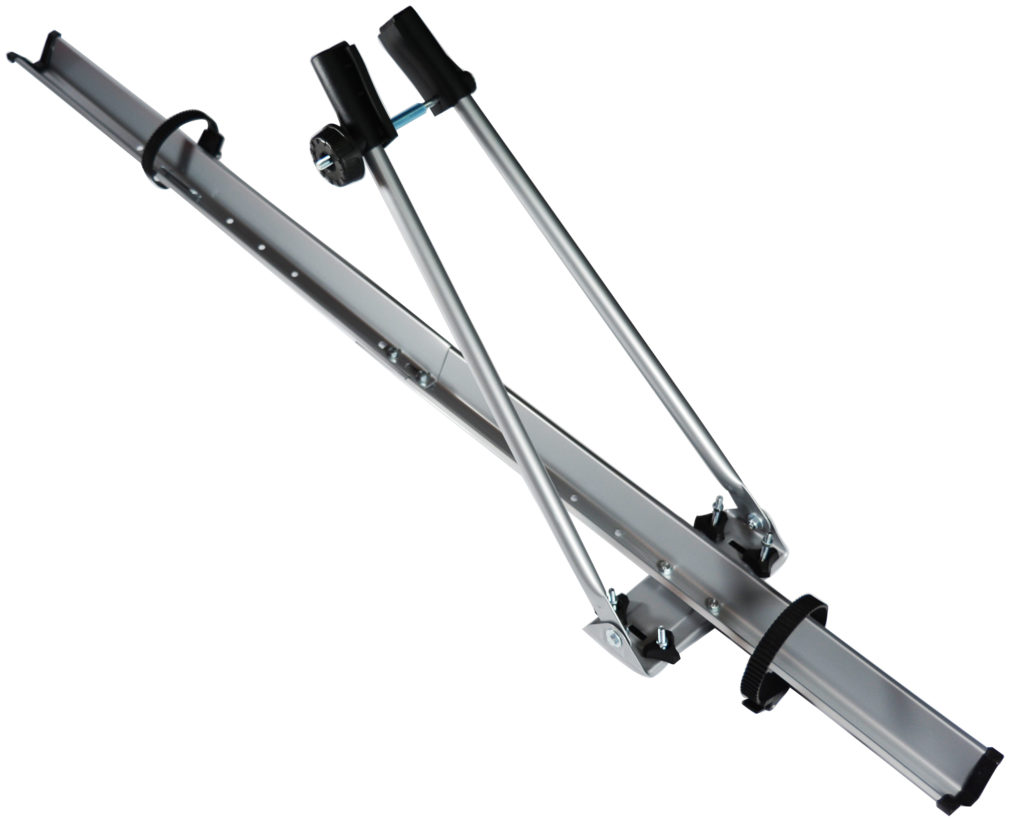 Ocelový výrobek italské výroby, namontovaný na střeše, dostupný k prodeji za cenu 2861 rublů, kola jsou upevněna na textilním pásu, rozsah rámu je 20-50 mm, maximální zatížení je do 15 kg . Produkt je oblíbený mezi řidiči, kteří takové jednotky pravidelně nepoužívají. Může za to atraktivní cena, kterou není škoda dát za sezónní doplněk.