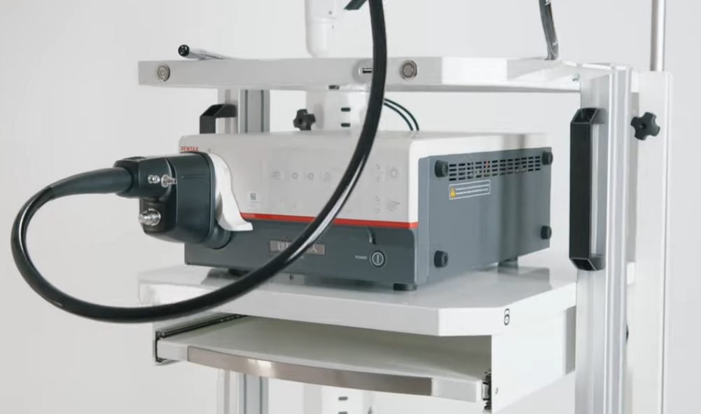 Ve stojanu je endoskop, držák monitoru, kde může být funkce pro změnu výšky, úhlu. Bezpečnost je zajištěna pomocí speciálních drážek pro vedení kabelů. Při tvorbě byly použity speciální materiály. Zařízení nepotřebuje zvláštní péči, stačí otřít povrch.