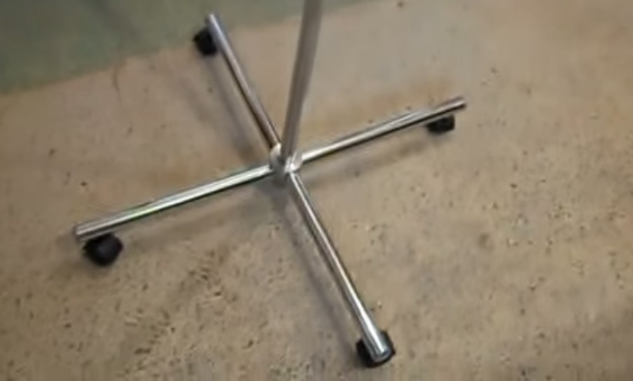 Pro výrobu vnější základny se používá plastový plech, který se neopotřebovává, nezanechává škrábance. Ve spodní části jsou kolečka o průměru 125 mm, takže nejsou žádné potíže s pohybem. Tyto dva prvky mají brzdy pro zajištění zařízení v jedné poloze.