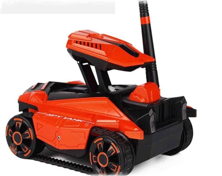 Miniaturní špionážní tank s vestavěnou kamerou se ovládá pomocí chytrého telefonu – stačí si stáhnout speciální aplikaci. Podporuje IOS nebo Android. Nastavitelný úhel kamery pro focení a natáčení videa, živé vysílání. Široká funkčnost a vysoká návštěvnost umožňuje používat zařízení jak v bytě, tak na ulici.