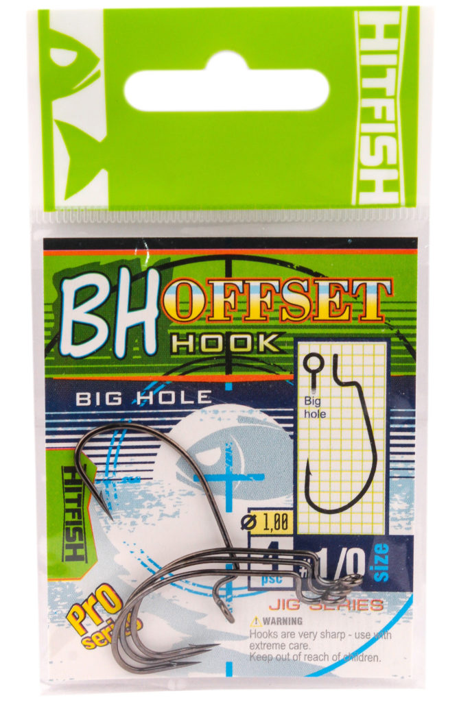 Univerzální háček, který je určen pro lov středně velkých ryb, ale i velkých dravců. Dobře zvládá svůj úkol v oblastech se skalnatým dnem, stejně jako rybníky a jezera, hustě porostlé vodní vegetací. Má zvětšený průměr oka, díky kterému se offset snadno připevní na tlustý vlasec. Vhodné pro vybavení jakýmkoli nákladem a vybavením. Velké zakřivení umožňuje připevnit téměř jakoukoli měkkou silikonovou nástrahu a přitom vypadat přirozeně s volným pohybem a manévrovatelností. Model je kvalitní za nízkou cenu. Hitfish Big Hole Offset je vhodný jak pro sportovní rybolov, tak pro rekreační rybolov. Průměrná cena je - 107 rublů.