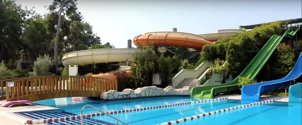 Jsou zde všechny atributy průměrného tureckého hotelu. Zajímavé řešení: simulátory na volném prostranství, minizoo (zvířata - kozy, pávi, kočky - pohybují se přímo po hotelu).