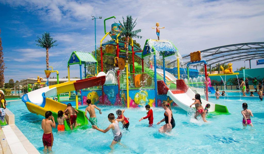 Pláž je malá, je zde vodní park s vodními atrakcemi, skluzavky pro děti.