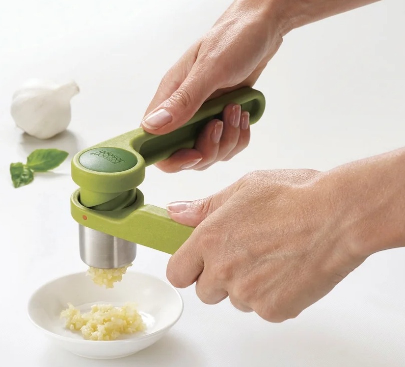 Lis, jedinečný svým designem, připomíná kleště a umožňuje rozdrtit stroužky česneku s minimální námahou.