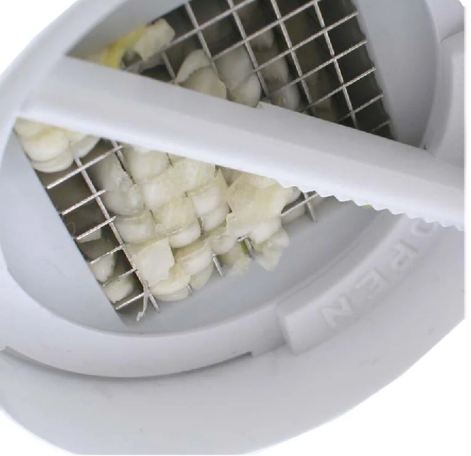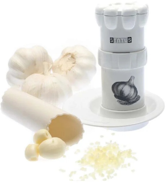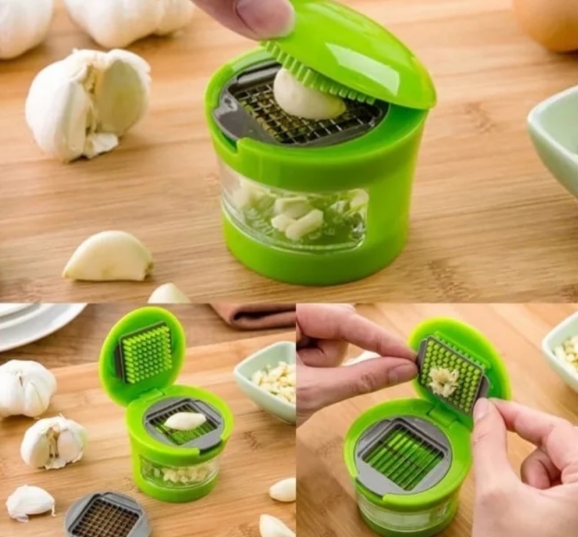 Multifunkční mlýnky, které kromě česneku dokážou nasekat ořechy, bylinky, koření, jsou skleněné nebo plastové sklenice s víčkem. Výsledné kostky mají určitou velikost. Takové modely dokonale zachovávají vůni rostlin.