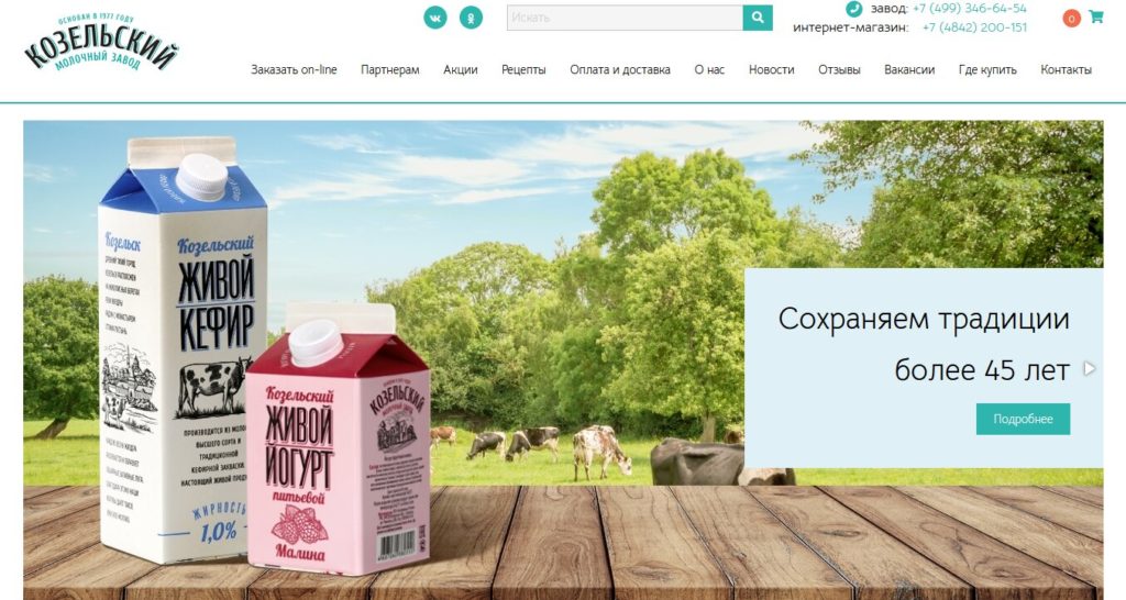 Sortiment: biokefir, kvásek, jogurt (pitný, hustý), ryazhenka, tvaroh, tvaroh, glazovaný tvaroh.