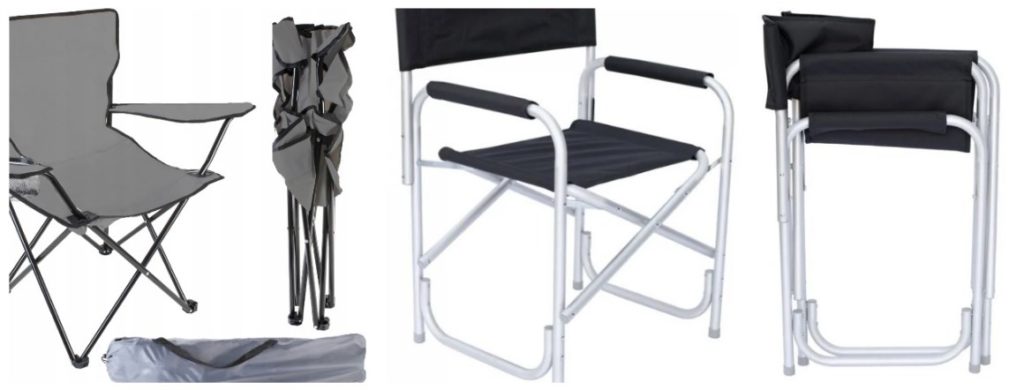 Skládací nábytek lze složit ve dvou nebo v jedné rovině. V první verzi zabírá předmět ve složeném stavu méně místa a složený do pouzdra se snadno přenáší i na túru. Když je nábytek složený v jedné rovině, je to celkově více a nepohodlné pro ruční přenášení.