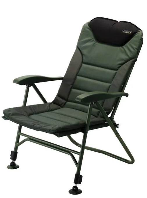 Další skládací židle pro pohodlnou zábavu při turistice nebo rybaření. Velký sedák 54x54 cm, vysoké opěradlo (celková výška 94 cm), široké měkké područky - vše je děláno pro pohodlí sedící osoby. Nohy jsou zakončeny plastovými zarážkami, které brání jejich zaboření do sypké půdy. Základna je vyrobena z ocelových trubek o průřezu 16 mm. Díky tomu je model poměrně pevný a odolný, unese až 100 kg hmotnosti. Vyrobeno ze silného polyesteru. Všimněte si, že v pravé loketní opěrce je umístěn držák nápojů. Výrobce také opatřil židli pohodlným potahem s madlem pro skladování a přepravu.