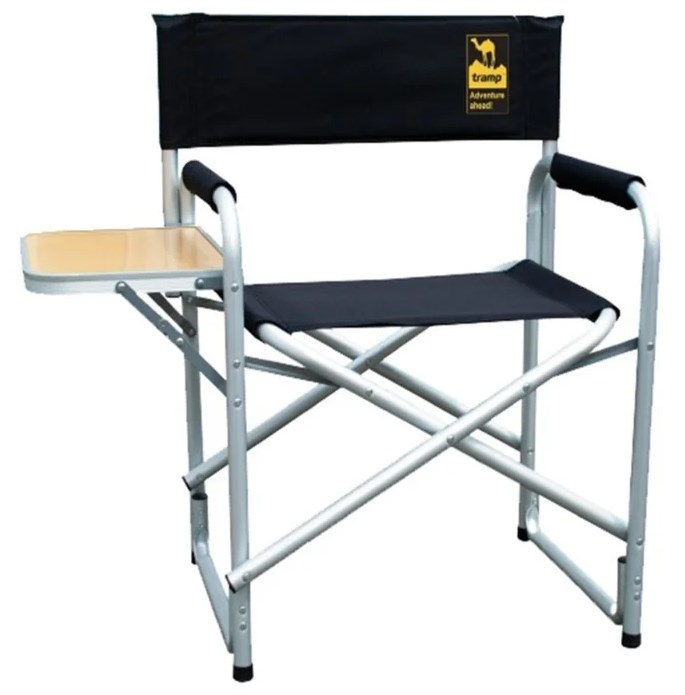 Není divu, že výrobce nazval Tramp TRF-002 ředitelskou židlí. Tomuto názvu plně odpovídá: velmi stabilní tuhá konstrukce, měkké područky a sklopný stůl, co dalšího je potřeba pro pohodlný pobyt? Sedačka je impozantní i rozměrem - 58x50 cm.Zároveň unese zátěž až 120 kg. Rám z hliníkových trubek o průřezu 25 mm. Hmotnost celé konstrukce je 3,5 kg.