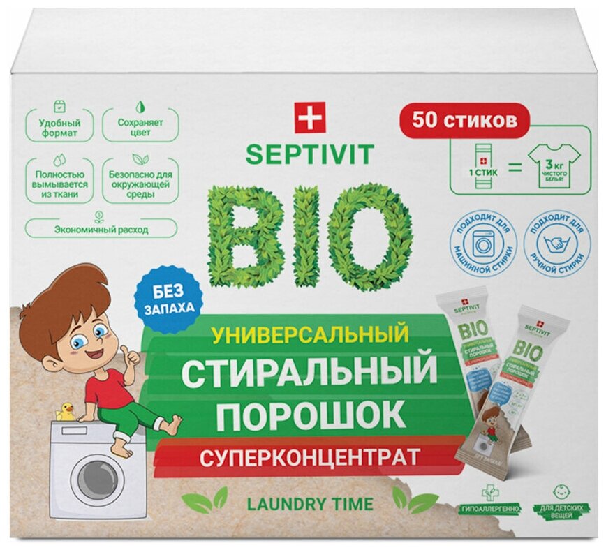 Hypoalergenní prášek ve formě tyčinek se používá tak snadno, jak je to jen možné, je vhodné jej vzít s sebou na cesty a cestování. Jedna tyčinka vystačí na 3 kg prádla. Značka: SEPTIVIT Premium. Z látky se zcela vypere i při použití studené tvrdé vody. Lze jej použít jak v automatu, tak na ruce. Průměrná cena: 999 rublů.