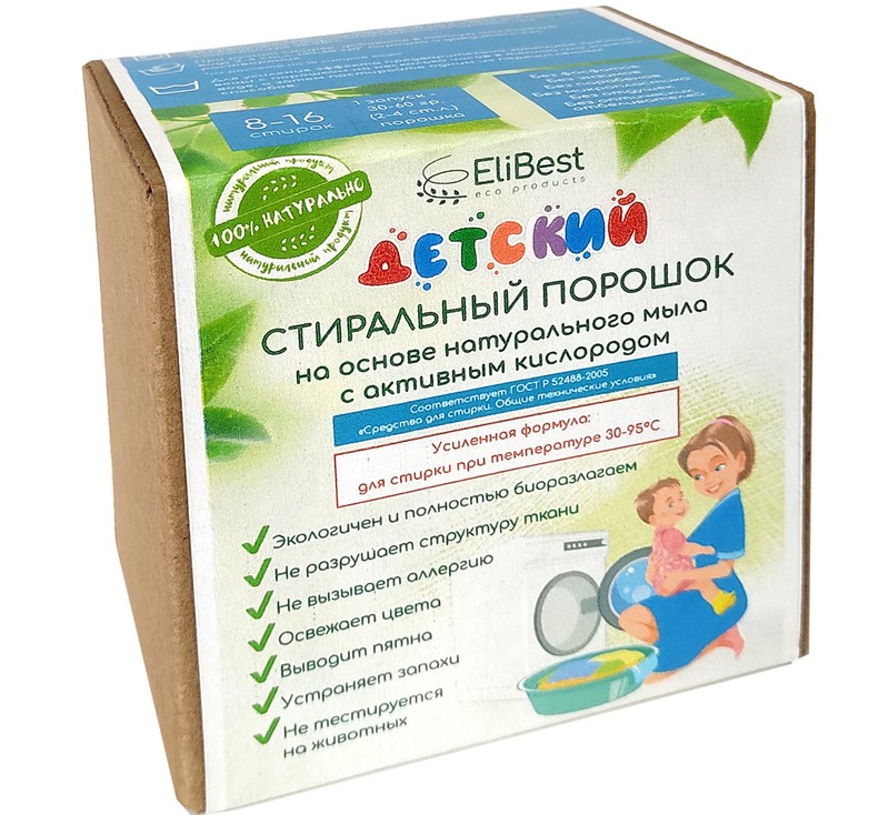Prací prášek je vhodný pro automatické i ruční praní, 0,5 kg vystačí na 8-16 praní v závislosti na stupni znečištění. Nepoškozuje vlákna tkaniny, poskytuje měkkost a snadné žehlení. Neobsahuje parfémy. Plně opláchnutý bez dalšího oplachování. Složení: drcené rostlinné mýdlo na praní, perkarbonát sodný, glycerin, aktivátor TAED. Průměrná cena: 320 rublů.