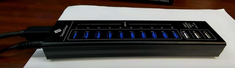 SmartDelux SDU3-P10C3 poskytuje uživateli 10 portů, jejichž maximální rychlost přenosu dat je až 5 Gbps.Hub má také 3 porty pro nabíjení gadgetů, které poskytují proud až 2,4 A.