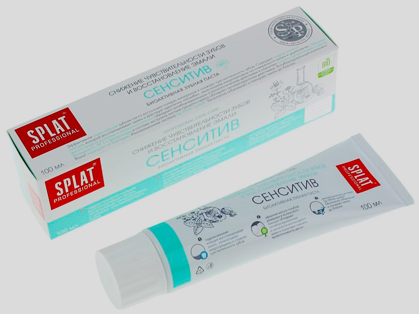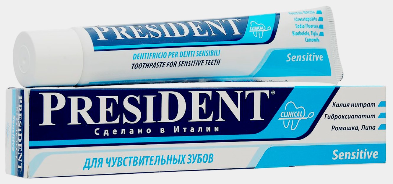 Prodává se ne v tubě, ale v kulaté lahvičce. Snižuje bolest, podporuje obnovu zubů a dásní. Nahoře - tlačítko, jehož stisknutím se ventil otevře a produkt se vytlačí. Chuť je mátová. Konzistence je hustá, bílá s modrými skvrnami. Je tam trochu soli. Padělky nejsou na prodej. Italský výrobce vyrábí bezpečnou a účinnou zubní pastu pro citlivé zuby s nízkou abrazivitou.
