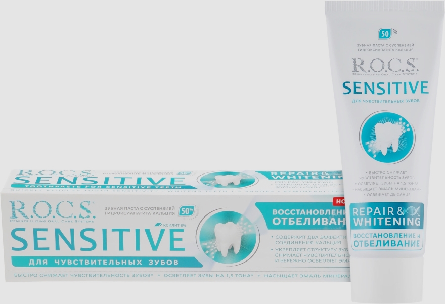 Speciální nástroj používaný k regeneraci skloviny a snížení citlivosti. Hlavní složkou je hydroxyapatit. Kvalitativně ucpává tubuly sám sebou a zabraňuje pronikání vnějších podnětů. Ostatní složky jsou antibakteriální a antiseptické povahy.Zastavte krvácení z dásní, dokonale vyčistěte plak. Konzistence je hustá, světle žlutá. Tvoří se málo pěny. Chuť je neutrální, s lehkou mátovou dochutí. Jemně bělí.