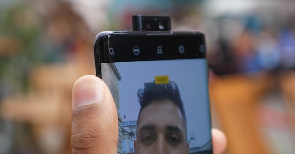 Přední kamera je jednoduchá, má 16 megapixelů a je umístěna na horní hraně, jako motorizované vyskakovací okno. Selfie kamera, která se při fotografování stylově stahuje, dodává vzhledu zařízení další ladnost a neobvyklost.