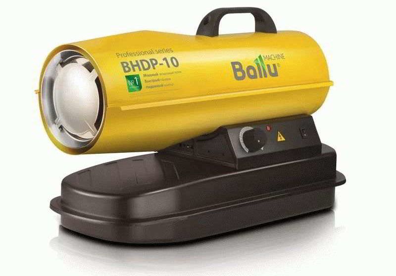 Dieselová pistole BaIIu BHDP-10 je vhodná pro vytápění a udržování tepla v nebytových prostorách nebo v místnostech s dobrým větracím systémem. Ohřeje až 100 m2. Jezdí výhradně na naftu. Příkon ventilátoru je 200 wattů. Teplovzdušná pistole s regulátorem teploty, díky kterému je udržována nastavená teplota. Hmotnost produktu 10 kg. K dispozici je rukojeť, pomocí které lze jednotku pohodlně přenášet. Cena je od 11 tisíc a výše.