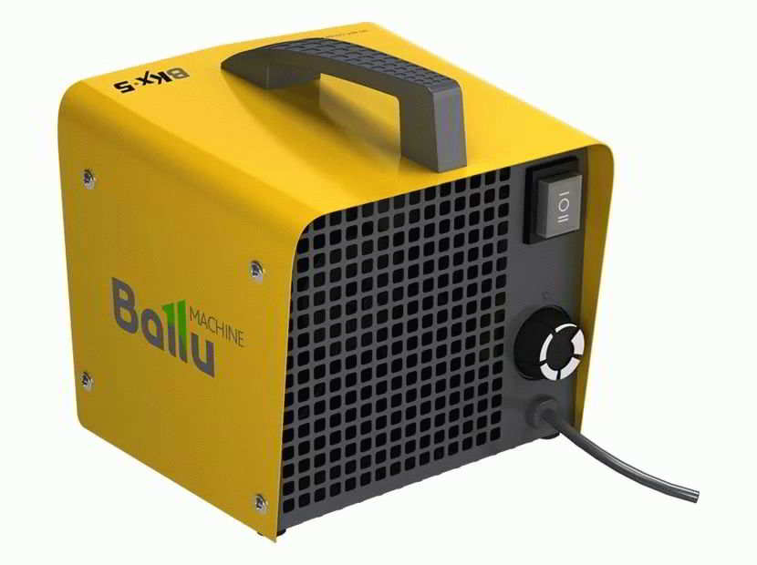 Horkovzdušná pistole BaIIu BKX-5 má keramické topné těleso, které rozvádí teplo přes 35 m2. Topný výkon 3 kW. Nechybí úprava výkonu, počet úrovní je 3. Nechybí ventilátor bez ohřevu, termostat a regulace teploty. Hmotnost produktu 2,2 kg. Díky metalokeramickému topnému tělesu rychle cirkuluje horký vzduch a přitom je zajištěna absolutní bezpečnost používání takové pistole. Pistole je vhodná do malých prostor, na dávání, do garáže. Cena je asi 2000 rublů.