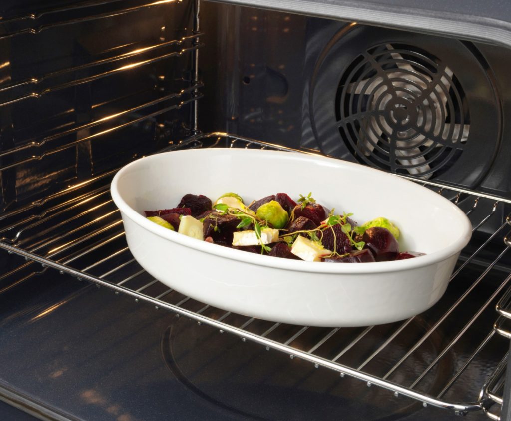 Til bagning kan du bruge silikoneforme, glas- eller keramiske bageplader med tyk bund. Metalbageplader er ideelle til stegning af fisk og kød.