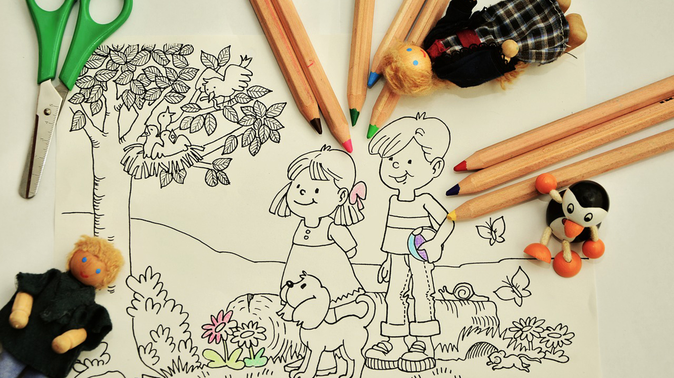 Billede - farvelægning, for, børn, de nødvendige værktøjer, til, kreativitet
