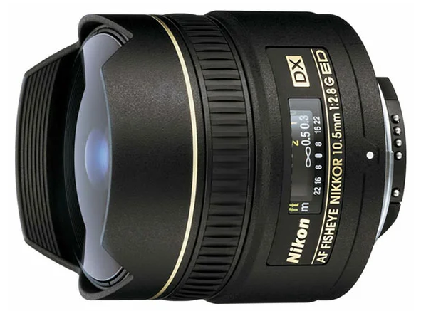 "10,5 mm f / 2,8G ED AF DX Fisheye-Nikkor" linse udseende