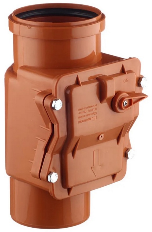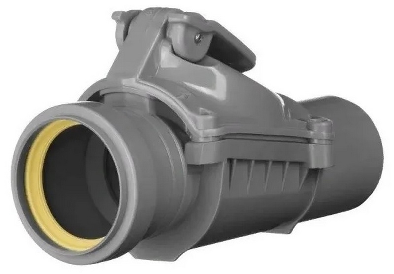 Prøven anbefales til installation i private huse, lejligheder, kontorlokaler, i produktion mv. Designet til at beskytte mod strømmen af afløb i den modsatte retning. Funktionsprincippet er mekanisk: med den korrekte vandstrømsretning afviger spjældet og sikrer uhindret passage af strømmen, med den modsatte retning af vandstrømmen lukker spjældet helt rørsektionen og tillader ikke strømmen at passere forbi ventilen. Kun vandret montering. Det er monteret på steder, der gør det muligt at adskille den indvendige kloakering fra den ydre (for eksempel i husets kælder, i brønden uden for bygningen, ved udløbet af kloakken fra lejlighederne og kontorerne i de nederste etager til bygningens fælles rørledning). Ventilens indløbs-/udløbsfittings er designet til at blive tilsluttet ethvert kloakrør af polypropylen eller PVC med en diameter på 110 mm. Det er muligt at arbejde gennem adaptere.Den anbefalede pris for detailkæder er 2700 rubler.