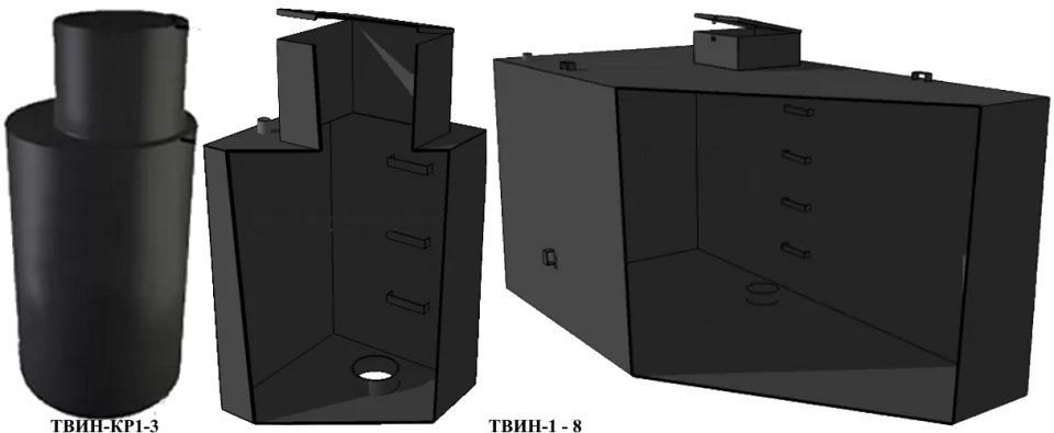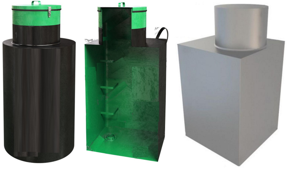 Modeludvalget af den indenlandske producent er produceret i cylindriske, firkantede og rektangulære former.Sammen med standard 4 mm vægge er det muligt at bruge metal op til 8 mm tykt, som ikke bliver slidt i mange årtier og forlænger levetiden. Derudover giver belægning med bituminøs Kuzbasslak BT-577 beskyttelse af metaloverfladen mod korrosion, selv i tilfælde af konstant fyldning af brønden med vand.