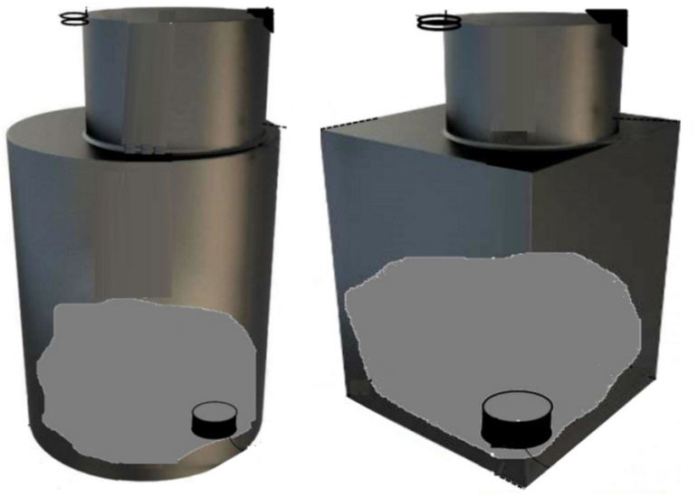 Det skal bemærkes, at det øverste kammer på enheden med en forseglet luge skal være placeret over jordoverfladen for at forhindre regnvand i at trænge ind.
