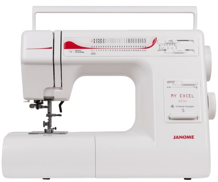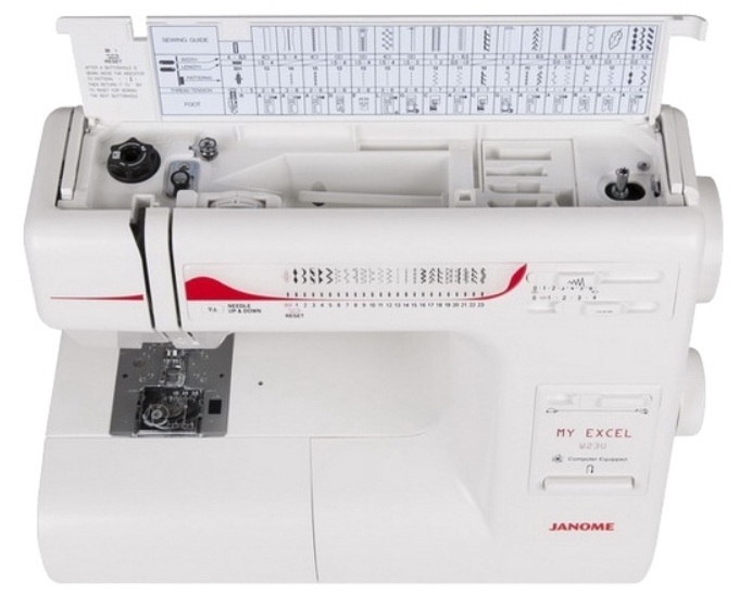| Janome My Excel W23U | –//– | vandret orienteret, rotation | 24 | maskine | 4 |