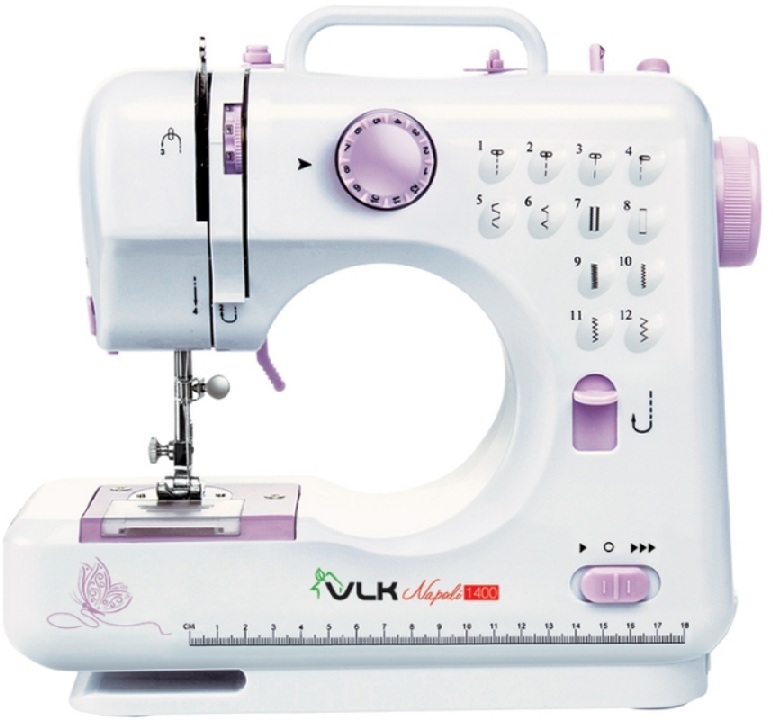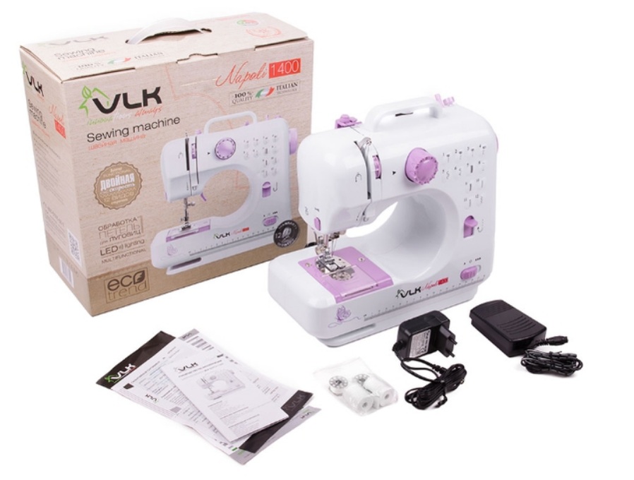 Den komfortable symaskine har alle de nødvendige betjeninger, inklusive striksøm, overlock.