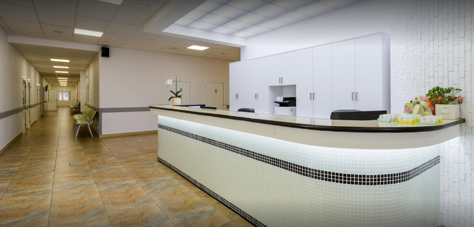 Institutionen er gunstigt placeret inden for fem minutters gang fra Tsvetnoy Boulevard metrostation, der er praktisk parkering. Bygningen er for nylig blevet renoveret, nye komfortable møbler, moderne diagnostisk og terapeutisk udstyr er blevet bragt ind. Operationsstuerne er udstyret med avancerede teknologier inden for traumatologi og ortopædi. På webstedet kan du konsultere en læge gratis, få en kupon til 10% rabat på den første aftale.Der er akkumulerede rabatkort på 5-15% afhængigt af tidligere betalte lægeydelser. Betalt behandling er tilgængelig på de bedste hospitaler i Israel.