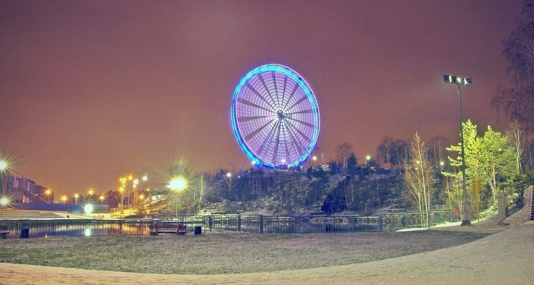 SEC "Rainbow Park" befindet sich in st. Repina, 94, das weit vom Stadtzentrum entfernt ist. Trotzdem bringen viele Einwohner ihre Kinder im Winter und Sommer hierher, um sich auszuruhen. Auf dem offenen Gelände in der Nähe des Zentrums ist ein hohes (50 Meter) Riesenrad mit geschlossenen Kabinen installiert. Die Beleuchtung des Rades im Dunkeln besticht durch seine Pracht. Das Rad funktioniert das ganze Jahr über. In der Nähe befindet sich ein wunderschöner natürlicher Stausee.