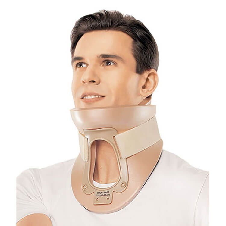 Dieses 10,8 cm hohe Modell ist für eine starre Fixierung des Halses konzipiert und hat ein Loch für die Luftröhre. Die Bandage hält den Hals in der richtigen Position, entlastet die Wirbel und entlastet die Nervenenden und Muskeln. Für die Herstellung werden ungiftige hypoallergene Materialien verwendet, die keine Hindernisse für die medizinische Forschung darstellen. Das Design kann nicht entfernt werden, um zu duschen oder therapeutische Manipulationen mit der Luftröhre durchzuführen.