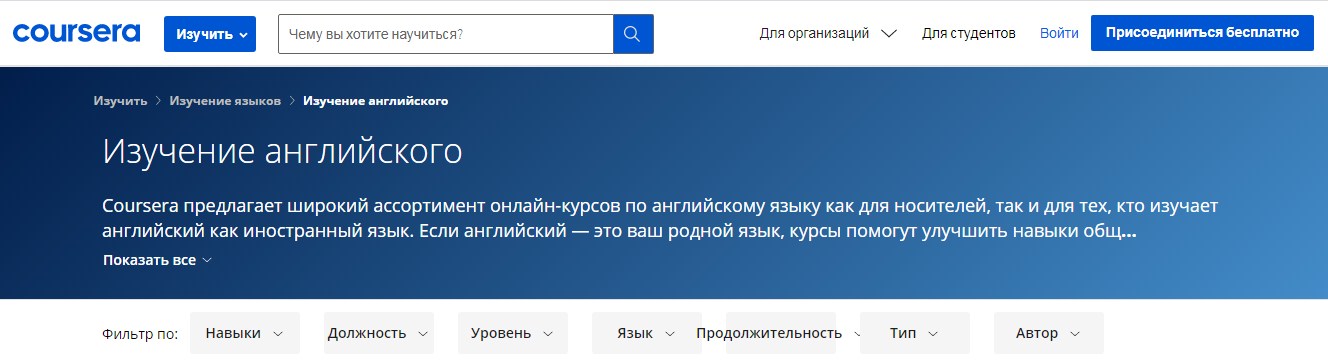 Wer möchte, kann ein Programm nach individuellen Wünschen wählen.Zum Beispiel Muttersprache, Dauer, entwickelte Fähigkeiten, Autor, Niveau, Position und sogar Art (Kurse, Spezialisierung, Berufszertifikat).