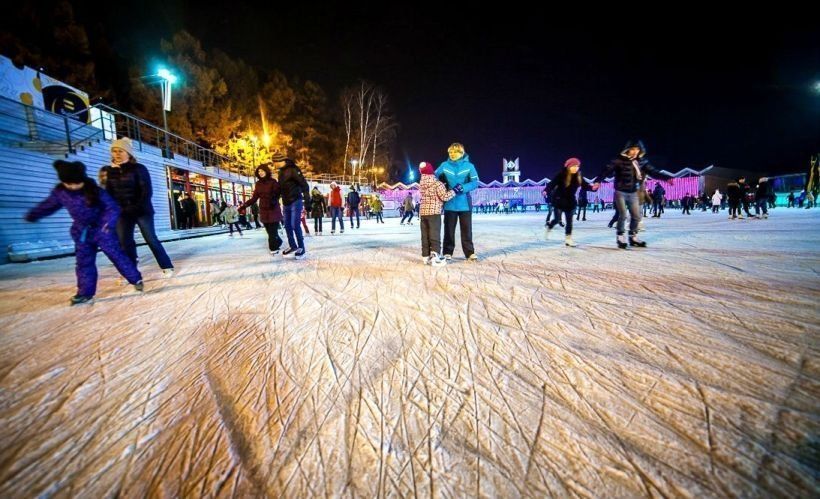 Dies ist ein weiterer interessanter Ort, an dem Sie sich in den Winterferien und an Wochenenden vergnügen können. Die Eisdecke bedeckt eine Fläche von 18 Quadratkilometern. Außerdem gibt es hier seit langem eine Schule für junge Eiskunstläufer. Es bietet Urlaubern eine Fülle von Cafés und Geschäften mit Leckereien und Souvenirs, Verleih von Schlittschuhen und anderer Ausrüstung, die Möglichkeit zu lernen, wie man dank Unterricht mit einem Trainer sicher auf dem Eis bleibt. Der Veranstalter kümmerte sich auch um sozial schwache Menschen. Rentner fahren hier also morgens kostenlos, Studenten und Schüler sparen mit einem Abo bares Geld. Die Eisbahn ist an allen Tagen außer montags geöffnet, mit einer technischen Pause in der Mitte des Tages. Die Sitzungskosten betragen maximal 550 Rubel.