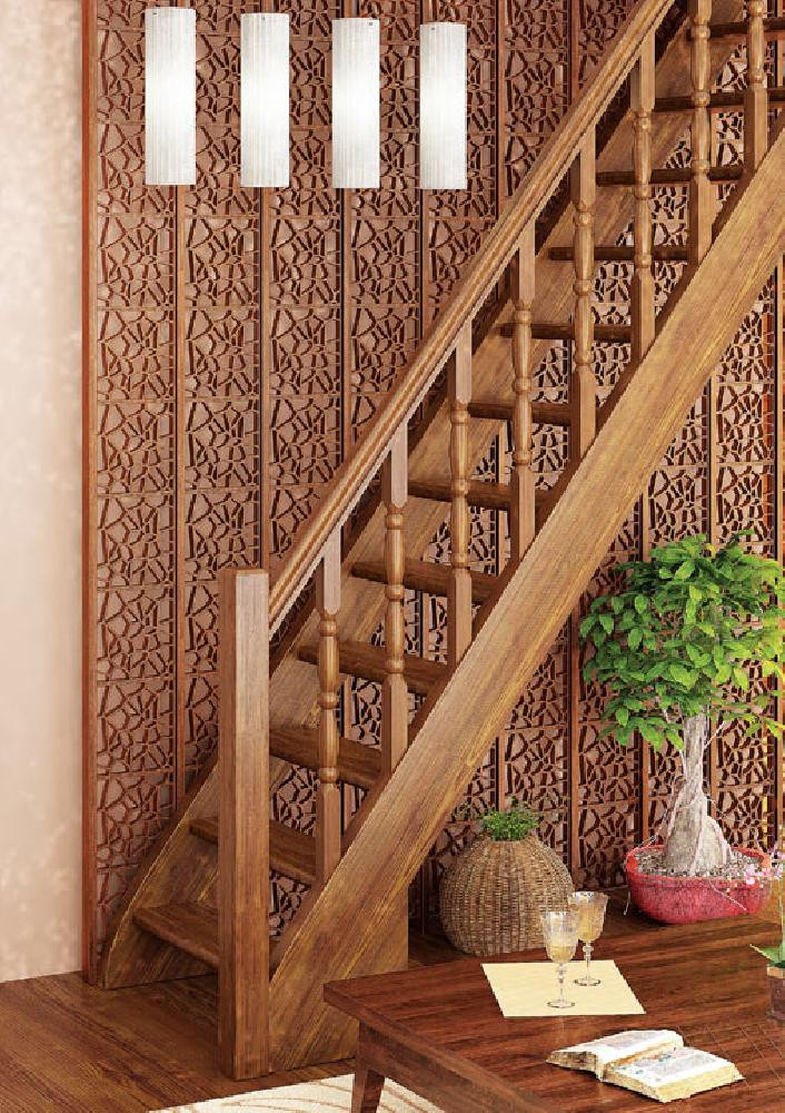 Das Produkt wird in Wandnähe montiert und hat auf einer Seite ein Holzgeländer. Trotz schmaler Trittstufen mindert dies den Bewegungskomfort nicht. Gegebenenfalls wird das Design reduziert, indem Stufen entfernt werden.