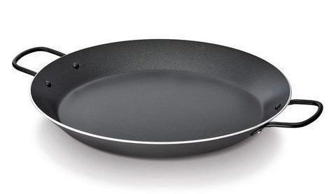 Die 28 cm Bratpfanne kann zum Kochen von Paella auf Elektro-, Gas- und Induktionsherden verwendet werden. Stahlgeschirr hat folgende Maße: 37,5 x 28,5 x 10,5 cm.