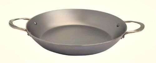 Die französische Marke De Buyer präsentiert eine professionelle Bratpfanne mit einem Durchmesser von 32 cm zum Kochen von Paella und Risotto. Sie ist aus Edelstahl gefertigt und mit Bienenwachs beschichtet. Das Material des Griffs ist aus Stahlblech.