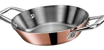 Pfanne und Griffe sind aus Edelstahlguss. Das Produkt mit einem Durchmesser von 16 cm ist zum Kochen für eine kleine Anzahl von Personen konzipiert. Trotz der geringen Größe bieten die Wände mit einer Höhe von 5,3 cm die Möglichkeit, Lebensmittel leicht zu wenden oder zu mischen.