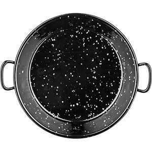 Der Gesamtdurchmesser der Paella beträgt 40 cm.Das Produkt besteht aus Stahl und hat 2 kurze Griffe, die durch Punktschweißen an der Basis befestigt sind. Die Höhe der Wände beträgt 7 cm.