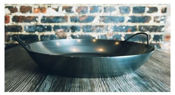 Valenciana Pulida ist aus strapazierfähigem Kohlenstoffstahl gefertigt. Es gibt 2 Griffe für eine einfache Handhabung.