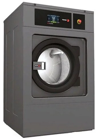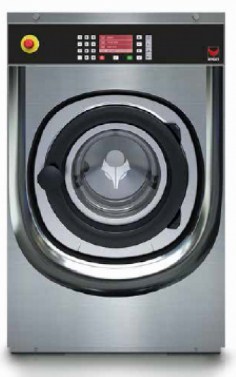 Eine Highspeed-Maschine eines amerikanischen Herstellers, die den Arbeitsablauf maximal erleichtert: eine breite Tür zum Einlegen der Wäsche (um 180 Grad zu öffnen), Anbindung an Bezahlsysteme möglich.