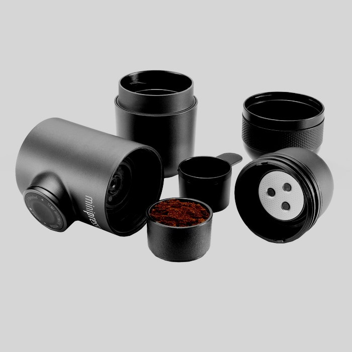 Das Gerät ist für Kaffee in Kapseln und gemahlener Zusammensetzung bestimmt. Für die Funktion ist kein elektrischer Anschluss erforderlich. Einfach und unkompliziert verwaltet. Der Tank ist für 80 ml Flüssigkeit ausgelegt. Das Produkt ist mit einer Vakuumpumpe mit einer Kapazität von 18 bar ausgestattet. Das Design wiegt 336 Gramm bei Abmessungen von 156 * 71 * 62 mm. Die Liste der Strukturelemente umfasst: ein Gehäuse mit einem Kolben, einen Siebträger mit einem Einfüllstutzen, einen Flüssigkeitsbehälter. Das Set enthält auch einen Löffel und eine Bürste, eine Tasse für Espresso und Kaffee.
