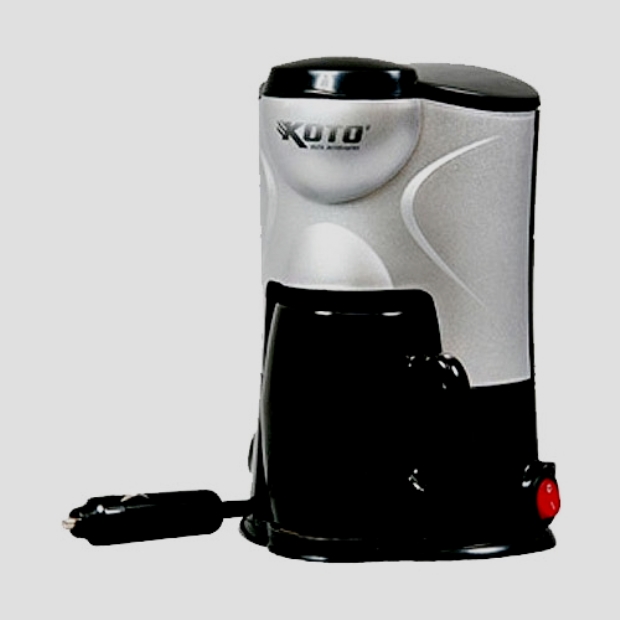 Das Gerät ist für 10 Tassen ausgelegt. Funktioniert über einen Zigarettenanzünder im Auto. Es ist sehr beliebt bei Menschen, die ständig auf Geschäftsreisen verschwinden oder mit ihrer Familie im eigenen Auto in den Urlaub fahren. Bei der Herstellung von Waren wird hitzebeständiger Kunststoff verwendet. Das Volumen des Reservoirs ist beträchtlich. Das Funktionsprinzip unterscheidet sich nicht vom Haushaltsgegenstück. Einwegfilter werden nicht verwendet. Verbraucht 200 Watt. Abmessungen - 24 * 19 * 30 cm Herkunftsland - Kanada.